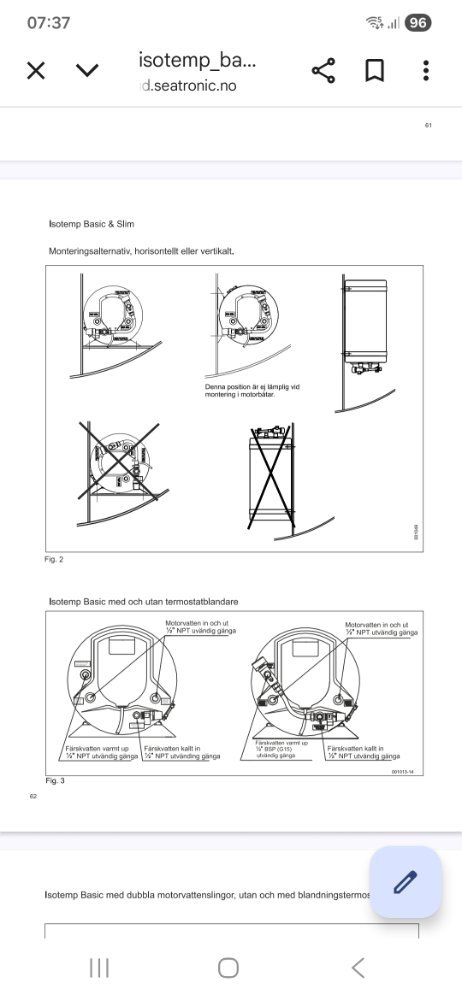 Andora Svart 22.November Link til dette innlegget Svart 22.November Isotemp beredere skal monteres med tilkoblingene nedover hvis den skal være montert stående. Hadde 40 liter isotemp basic i min forrige båt,ved vinterkonservering tok jeg alltid av slangene inn og ut av bereder for å få tømt den helt. Sitér dette innlegget Link to post