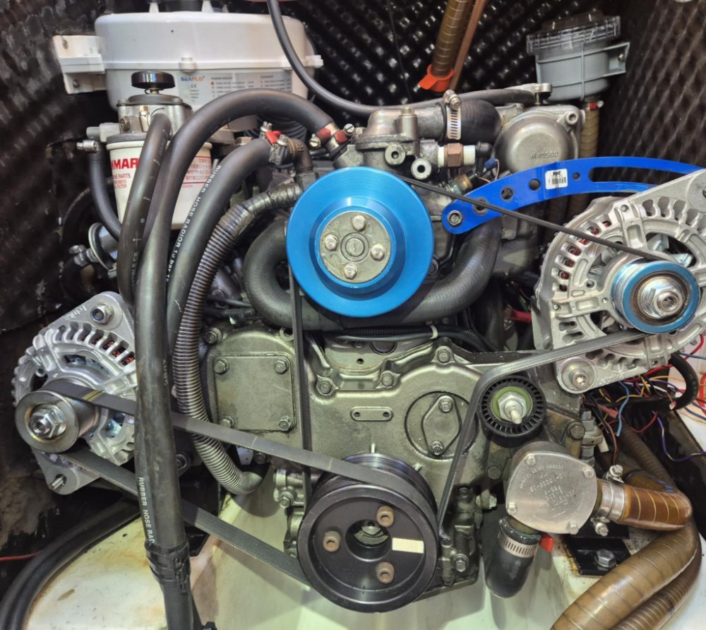 offpist Svart 27.September Emnestarter Link til dette innlegget Svart 27.September I 10 år har vi altså hatt 1000 AH @12V og det har fungert utrolig bra. 800W med Solceller dekker i snitt kanskje ca 60% av egen forbruket når vi er på langtur. På svært gode sommerdager dekker det 100% men på overskyede dager bare 20-30%. Resten må vi få inn via dynamoer. Og forskjellige løsninger har vært prøvd opp gjennom årene. 120A Balmar, 140A Balmar ,160A Balmar, 200A Balmar, 275A Arco og Delco 28SI (12V200A). Eksterne regulatorer som Mastervolt Alpha PRO 2, Wakespeed WS500 og Arco ZEUS har vært brukt. Noen dynamoer har vi brent opp ganske fort, andre har vi kjørt litt hardt over tid og der har lagrene tørket ut. Det vi har erfart er at det er noen fysiske lover man bare ikke kommer rundt. Man kan designe en small frame dynamo som kan yte 300A+, i 1 minutt men det gir lite praktisk verdi. En 12V dynamo har bare ca 60% effektivitet, noe som betyr 40% bare går bort i varme.. .mye varme. Så jo større dynamoen er, jo mer greier den å bli kvitt varmen.. derfor har jeg gått over mot large frame dynamoer. Men alt med måte, det skal jo være plass for den også. Det beste jeg greide å få til, var 400A (5.2KW) kald, og 300A (3.9KW) varm.. Noe som så klart er kjempebra, men mye vil ha mer. Så det vi har gjort i høst er å bytte ut batteribanken med Victron 51.2V NG batterier. 500A @ 51.2V = 25.6KWH, altså ca 2000AH i 12V hvis man skal sammenligne med det. Dynamoene er 2 stk Mahle 56V 150A, styrt av 1 stk Arco Zeus. Så langt så viser tester at vi greier nå 16KW på 2500 RPM. Tenk på det.. for å lade 16KW med 12V må du opp i 1200A. Med litt konservative verdier og 2150 RPM så ligger vi på 11KW kald og 9KW varm. Da blir dynamoene ikke en gang 100`C ved kontinuerlig drift. Multiplus er også byttet ut med den nye 48/4K5 som greier 4500W kontinuerlig. Og prisen er nesten halvparten av 12/3KVA som den erstatter. 800W med solceller håndteres nå av en bitteliten MPPT 100/20. 12V drives av 48/12V-30A Orion TR Smart, med et 90 AH Lifepo4 batteri som buffert. Sitér dette innlegget Link to post
