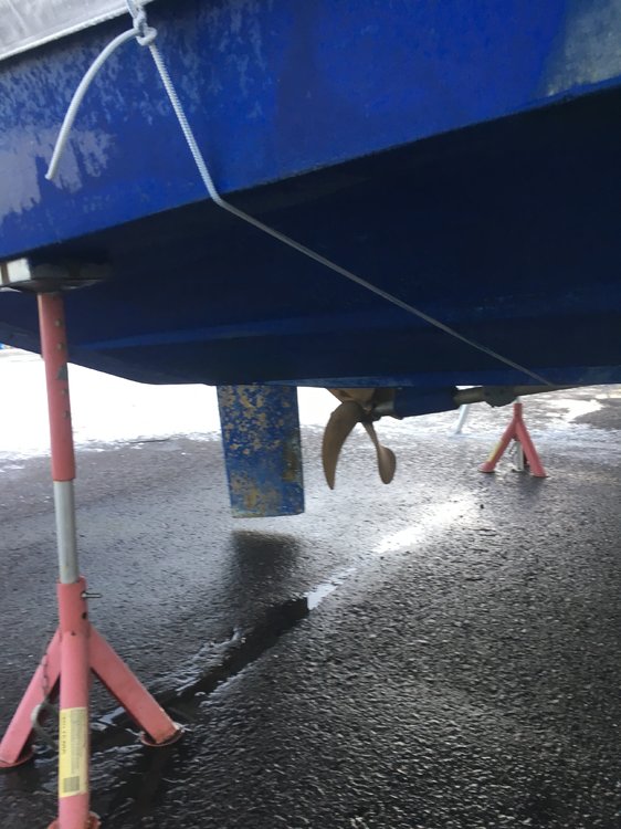 Har selvfølgelig første dag i ferien klart den store blemma å kjøre av roret(bladet). Trenger ror med akslingen. Henger i krana på Herføl og klarer ikke å skaffe ror. De har ikke det jeg trenger på Sleipner. Er for lite til min Alicraft 31ac.