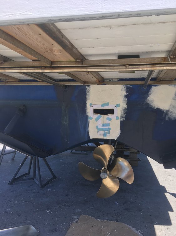 Det ble et helt komplett nytt ror. Måtte tette gamle hull, lage ny plate innvendig akter, flytte rorarmholder og flytte holder til autopiloten. Pussing og priming, og litt stoffing her og der. Masse sika.