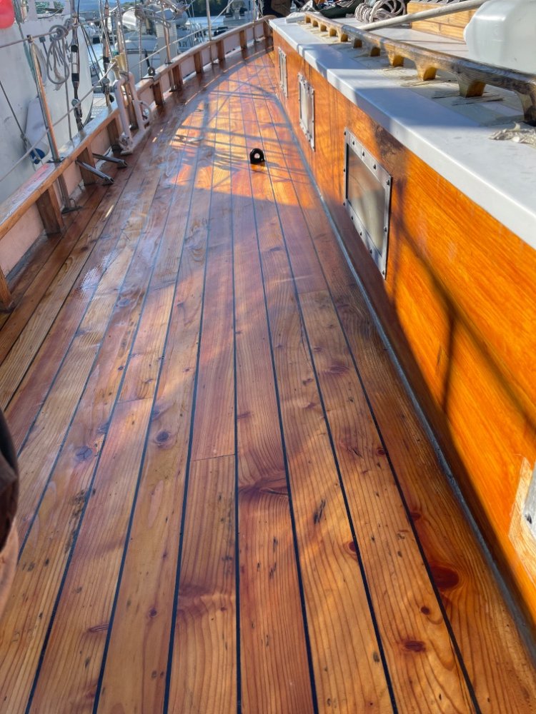 Fjellogsjø Startet 18.Juli Link til dette innlegget Startet 18.Juli Hei! Jeg holder på med å pusse ned dekket og rekka på min Colin Archer etterligning på 40 fot. Skroget er av epoxybelagt furu, dekket er laget av kryssfiner med lerk som toppdekke. På dekk og på rekka er det tidligere brukt poly-urethan lakk, som nå flasser av i store mengder. Det har blitt en del blå flekker, og det er noe fuktighet også rundt sårene i lakken da det ikke får tørket skikkelig i og med at lakken ikke puster. Jeg tror det blir nødvendig å slipe dekket helt ned, og med det vurderer jeg å gå over til olje/diffusjonsåpen behandling av treverket. Spørsmål: Hva slags olje anbefales til bruk på dekk og rekke? Foreløpig har jeg tenkt blanding av tjære, linolje og terpentin. Skikkelig tjære er visst ikke så lett å få tak i, men det lar seg vel bestille. Finnes det kanskje gode produkter som er ferdigblandet? Jeg har forhørt meg litt rundt og anbefalinger ellers har vært Møretyri, Owatrol, Ravilakk, Jotun Clipper, Tjæralin treolje og Gjøco dekksolje. Tar gjerne imot anbefalinger og alt av forslag og erfaringer andre har gjort seg, jeg er nybegynner :-) (På nederste bildet er rekka pussa ned, ikke startet på selve dekket) Sitér dette innlegget Link to post