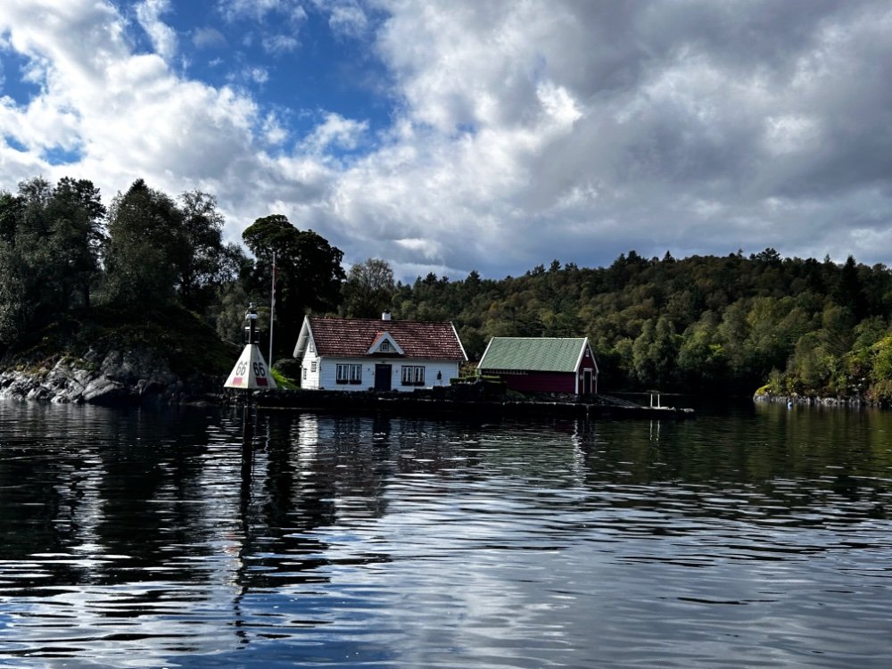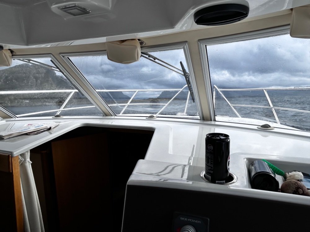 Vi ventet og ventet i Florø, det blås hatter og strå og litt til en stund, løyet litt, men vi hadde likevel 14 ms i kastene når vi endelig var avgårde, det var nok egentlig, tull å gå ut i noe mer. Største problem var jo det enorme regnværet i kombinasjon med å fylle diesel. Vi klarte det til slutt, søkk våt før båten var ferdig fortøyd og annen hvert minutt åpnet slusene seg så vi måtte bruke en av veggene i kalesjen til å sikre at vi bare fikk diesel på tankene:)