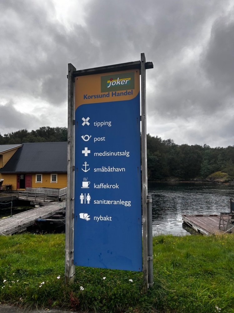 Vi gikk innom Korssundet og rakk akkurat butikken og fikk handlet litt før vi gikk videre til Eivindvik