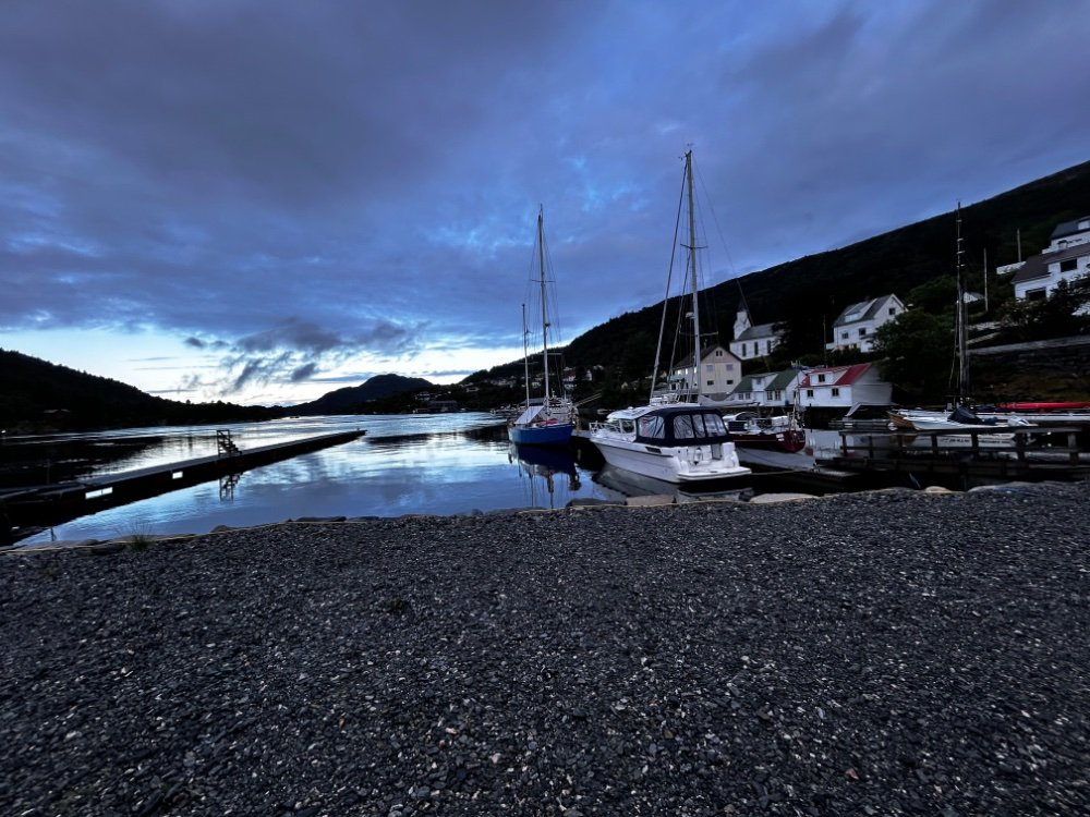 Vi har vært knallheldige med været! Går indre lei på Husavika. Liten pittstopp i Krsund, vi har ikke handlet siden Harstad😅