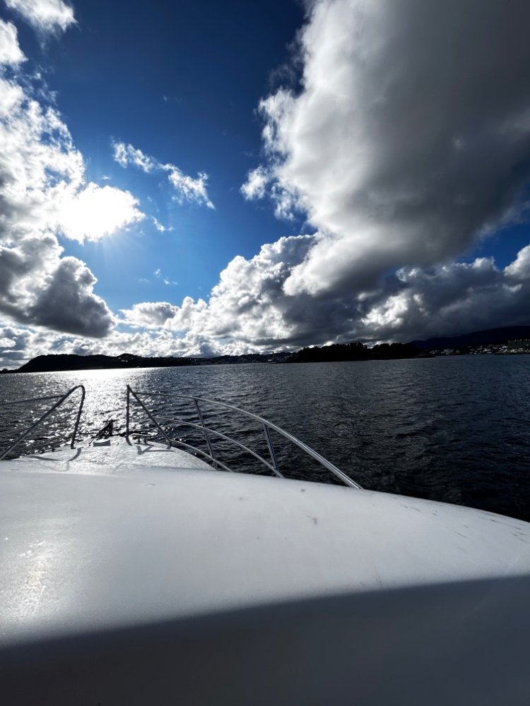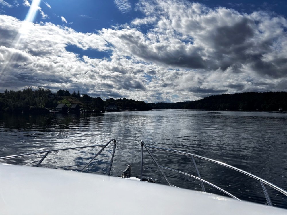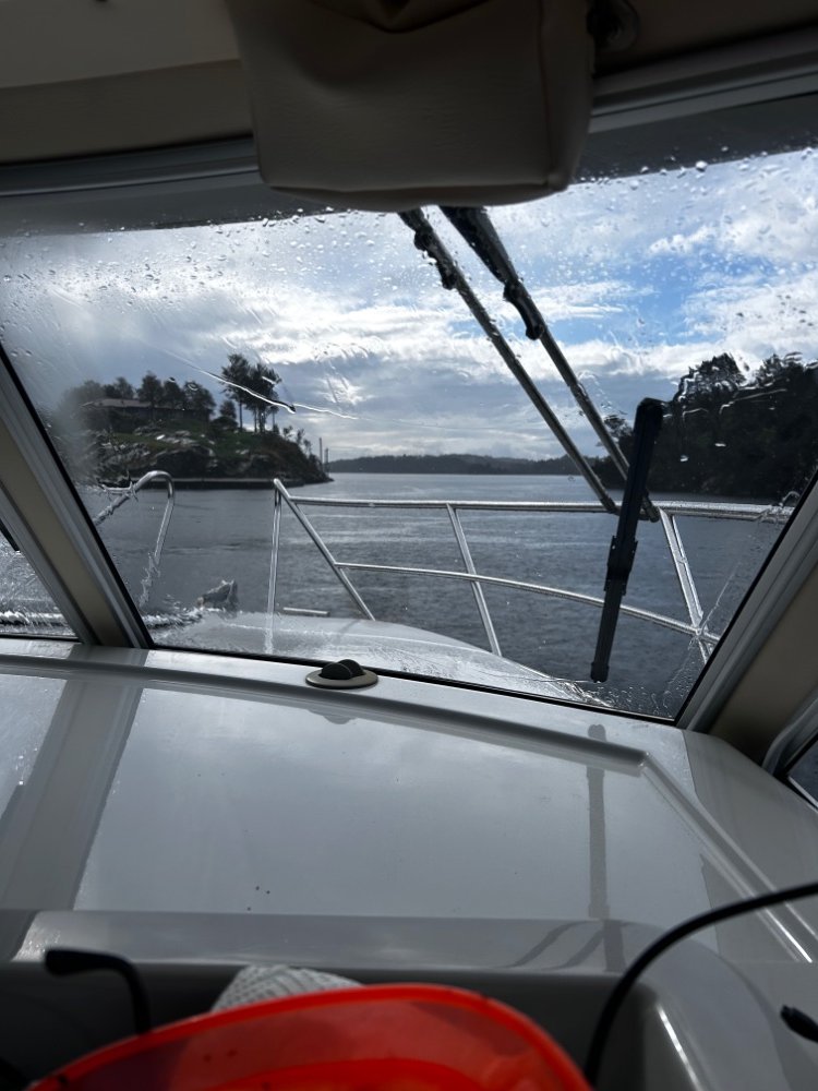 Her er noen bilder fra i går som ble litt humpete, men jeg er veldig fornøyd med båten som sjøbåt, forbi Askrova og sørover er det humpete sjø, skikkelig humpete, det har vi prøvd med seilbåten i 2018, men vi lå på 10-12 knop og fikk få harde slag og der er knapt slingring i hele tatt. I slike forhold kommer den større tyngden i 32 vs 870 til sin rett.
