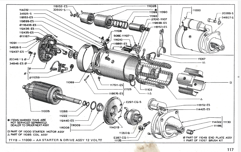 hegra Svart 27.September Link til dette innlegget Svart 27.September På øverste skissen som Roger jo la ut ser man et nr 11125 omtrent midt i tegningen. Nummeret viser til en skrue, en mutter og en brei ring. Løsner man skrua og trekker ringen bakover blir børstene synlig i åpningene. Jeg gjorde dette på min egen starter og sjekket at børstene beveget seg i holderen og sprayet med egnet spray. Da ble børstene lette å bevege. Det var ingenting galt med starter, men gjorde det fordi motoren likevel var ute. Nå skriver ikke Ole 78 om det klikker i starter eller om det er helt stille når start mislykkes. Regner med det klikker. Sitér dette innlegget Link to post