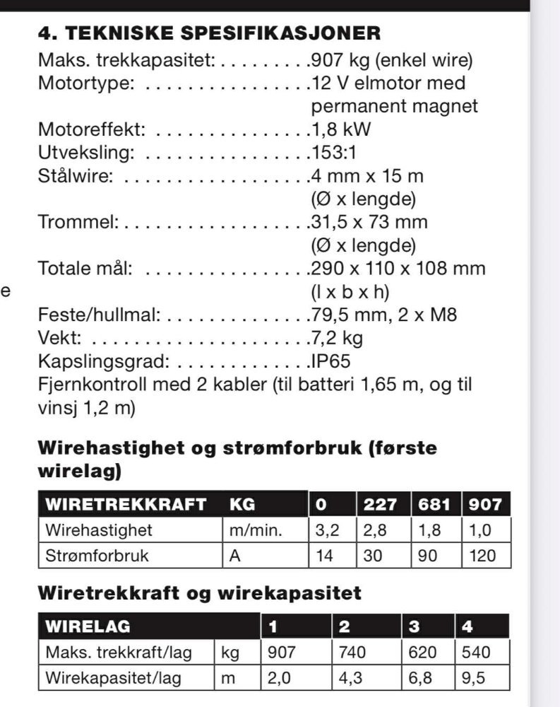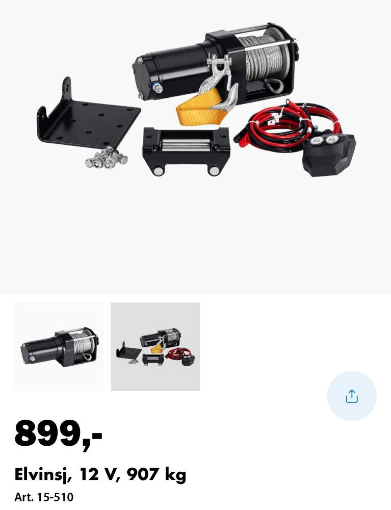 ko-stens Startet 29.September Link til dette innlegget Startet 29.September Må ha ny vinsj til båthengeren da den som sitter der nå er i overkant godt brukt, og båndet er dårlig. Titter (selvfølgelig) på Biltemavinsjer. De er sikkert greie nok med tanke på lite bruk gjennom året. Båten ligger stort sett i havna, slik at den brukes ved utsetting på våren og opptak på høsten. Men så er det slik at jeg gjerne bruker den tre, fire ganger til i løpet av sesongen. Er passe lei av å styre med dårlig vinsj, særlig når jeg har en skulder som tidvis ikke bør brukes til tyngre arbeid, så da plutselig dukker tanken opp på elektrisk vinsj. Biltema har noe som kan funke, ser jeg, og til en ganske hyggelig pris, faktisk. Båten er ikke så store saken. 14,5 fot og totalt kanskje 450 kilo med full tank og med utstyr. Vil en vinsj som har maks 907 kg passe godt til denne bruken? Den vil jo trekke i motbakke på slippen. Og hvor stort batteri bør en ha til denne? Tenker rett og slett å ha batteriet i bagasjerommet på bilen og koble til når jeg trenger det. Jeg har et ubrukt startbatteri på 12V/80Ah stående i kjelleren. Det holder sikkert det, men kan jeg bruke et som ikke er så stort? Eller egner ikke startbatteri seg til slik bruk? Sitér dette innlegget Link to post