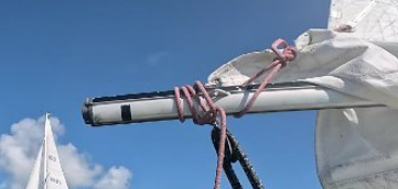 Jeg hadde droppet single line reefing, men det er fullt mulig å rigge det. Det er litt tryggere å sette, men ofte litt plundrete å trekke ut igjen, spesielt hvis det er rigget for flere rev.  En ulempe med single line reefing er også at seilet trekkes ut fra masten før seilet er firt ned og fallet er strammet. Det kan gi skade på seil, men går som regel bra med den størrelse seil du har.