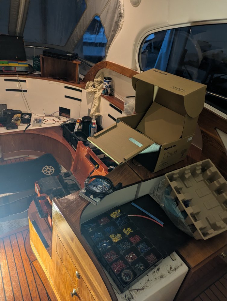 Øyeren24 Svart 17.November Emnestarter Link til dette innlegget Svart 17.November "BILDE FØR" LIKER IKKE ledninger som henger og slenger så limte på noen vinkler for gjøre det mere ryddig og brukervennlig ved inspeksjon. På x fineer platen ( som er behandlet til orientering 😉) skal nmea2000 seatalk nettverket monteres . Ais er en trak b350 som jeg driver og omprogramerer til nytt Mmsi Nomr og kallesignal. Lagt og egen kurs med strøm opp hitt " da veit jeg systemet har en politelig kilde og ikke strømtyver fra andre kilder... Sitér dette innlegget Gjør ting skikkelig 1 gang Link to post