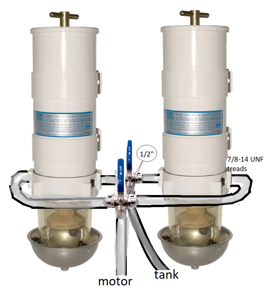 Øyeren24 Svart 25.November Emnestarter Link til dette innlegget Svart 25.November Her er planen for racor 1000 filter oppsettet uten og kjøpe ferdig kit fra racor. en slik 6 veis kran som dem har er håpløst dyrt og vanskelig og finne så blir 2x 3veis 1/2kraner :) Dustette store filtere men får vell aldri nokk filtrering når det gjelder båt og hårsåre D motorer som krever det beste av diesel kvalitet! skal iallefall ikke rase noen dyser eller pumper grunn av dårlig dieselfiltrering system! :) Sitér dette innlegget Gjør ting skikkelig 1 gang Link to post
