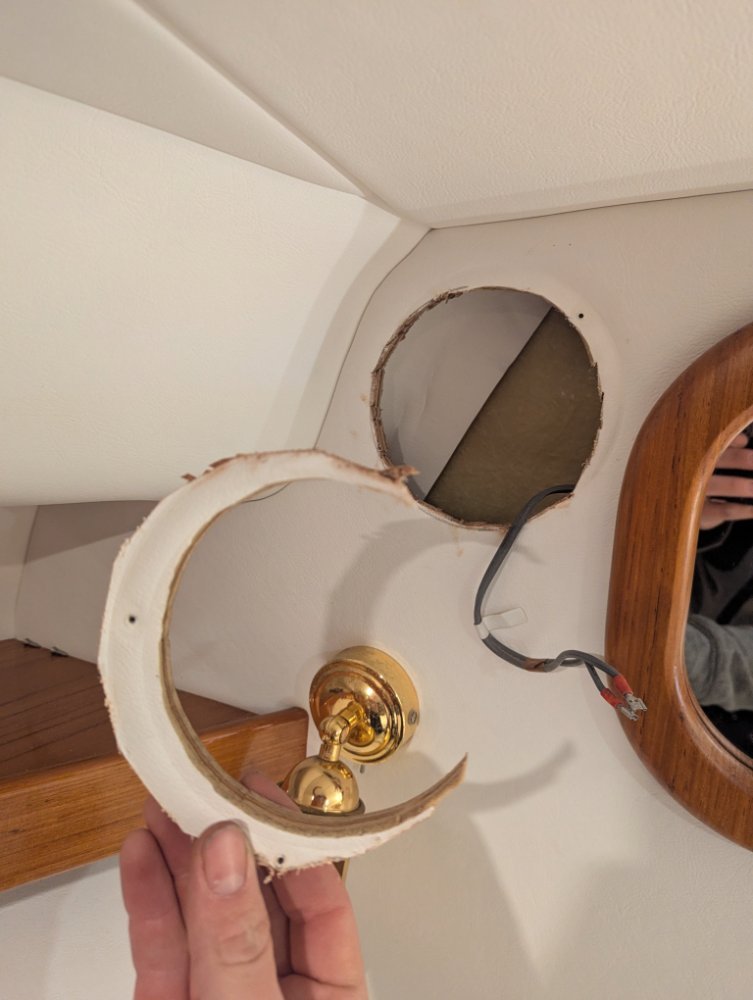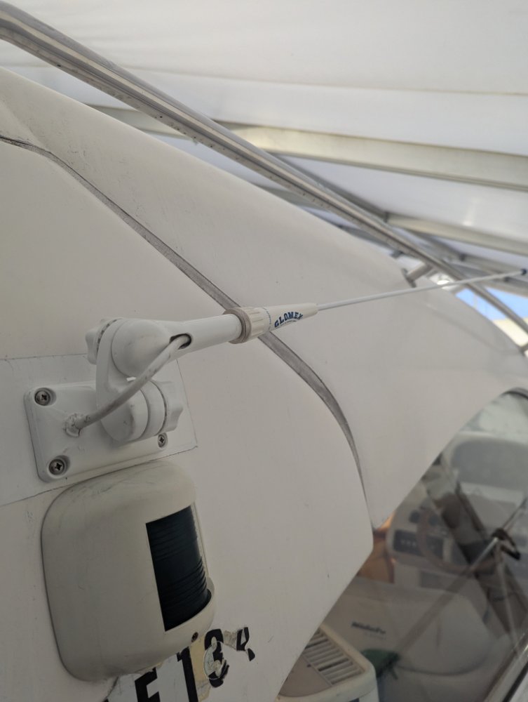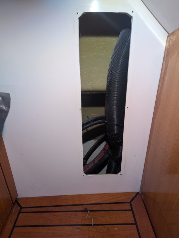 Da var endelig Vhf ledninger trekket til antennen sin, Etter tlf til Nidelv hadde dem glemt og skjære hull over vasken til inspeksjon så da feinet jeg hull selv 👍 lage blende lukk siden.