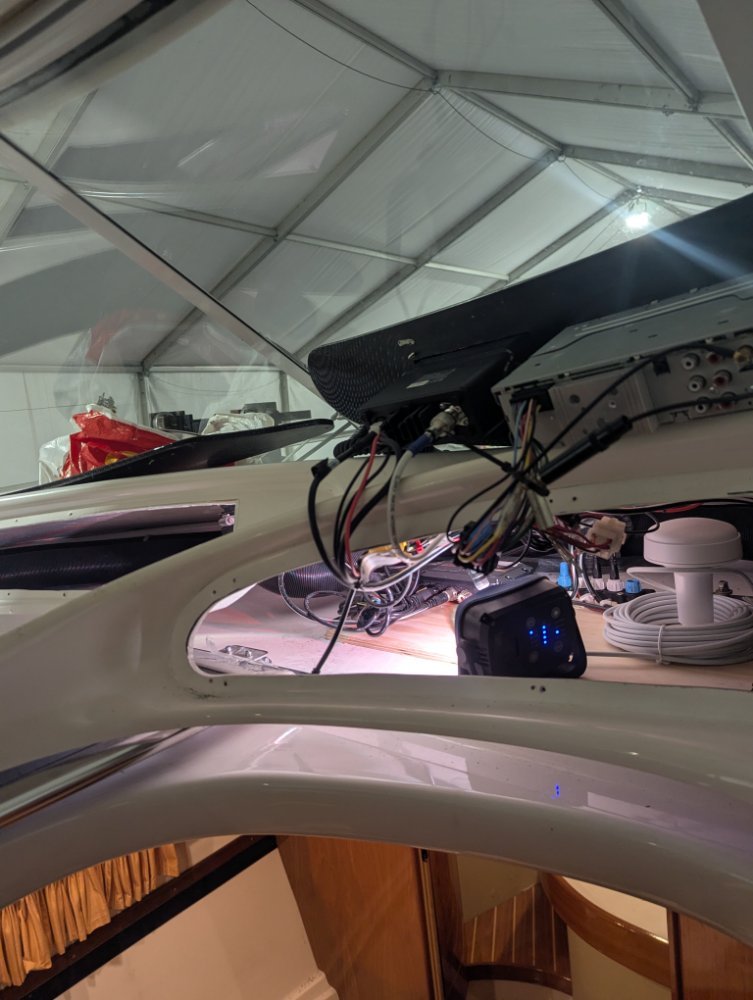 Feinet også bak dashbordet på babord side for fremtidelig forsterker som lett kan konmes til 👍 liker allt data komponenter er montert trygt bak dashbordet og kan komme til uten ligge på hodet opp ned i ukurante rom 😆