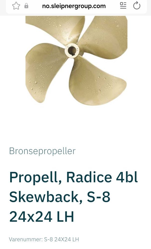 Martin_ Svart igår klokken 07:07 Emnestarter Link til dette innlegget Svart igår klokken 07:07 Komodo skrev for 6 timer siden: Avsinking er sikkert ikke feil, men jeg tviler på at propellen er av bronse som du skriver i trådtittelen. Jeg trodde også det var messing, helt til jeg så på nettsiden til Sleipner. Der er den beskrevet som bronse. Sitér dette innlegget Link to post