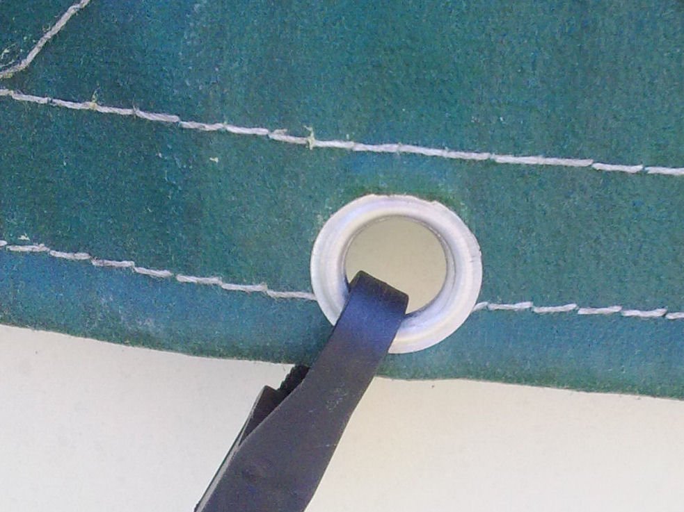 Hei Roger!  Jeg har drøssevis av slike klyper, bla den du nevner der. Jeg henger opp spylervæskekanner med frostvæske tett i tett på begge sider for å holde presenningen stram og unngå blafring. Mange av maljene på den gamle presennignen røk av, kanskje de fleste faktisk, men med slike klyper har det gått helt greit allikevel. Tror jeg går for samme presenning en gang til.