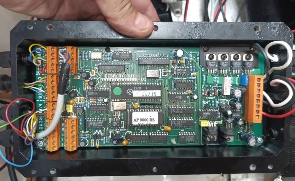 Driver fortsatt å rydder i i gammelt elektrisk utstyr og kabling i min "nye" Viknes 900 Combi. Kartplottere, radar, ekkolodd og vhf er nå koblet sammen og fungerer. Turen har nå kommet til autopiloten som er en C-TRONIX AP9000. Det är ut til at denne ikke er original fra Viknes, da det med båten også var bøker på en ctrek 747 som antagelig var den som satt der da båten var ny. C-TRONIX en har et betjeningspanel , hydraulisk pumpe, rorindikator og styringsenhet. Ved om/standby kommer båtens kurs rett i displayet, men når autopilot aktiveres, begynner pumpen å aktivere roret, men styret helt vilt. Tror selv at det er styringsenheten som er gåen. Hvet noen om noen som kan reparere slikt.. Kan styringsenheten erstattes av en annen fra annet fabrikat. Har sett på noen andre styringsenheten og det ser ut som de har lik tilkobling til pumpe,fluxgate, strøm, rorindikator.