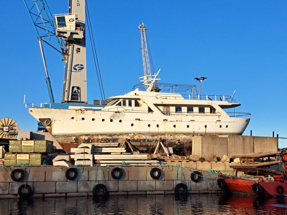 Prøvde å ringe mek verksted på Ny Helleseund, men der fikk jeg «nummer ikke i bruk». Ringte også Kolbjørnsvik i Arendal, men der var båten for stor. Ble sagt en som kunne løfte der, «men han er dyr, så du er advart».