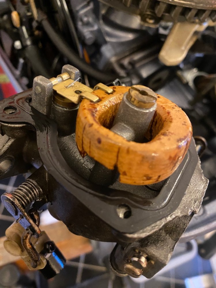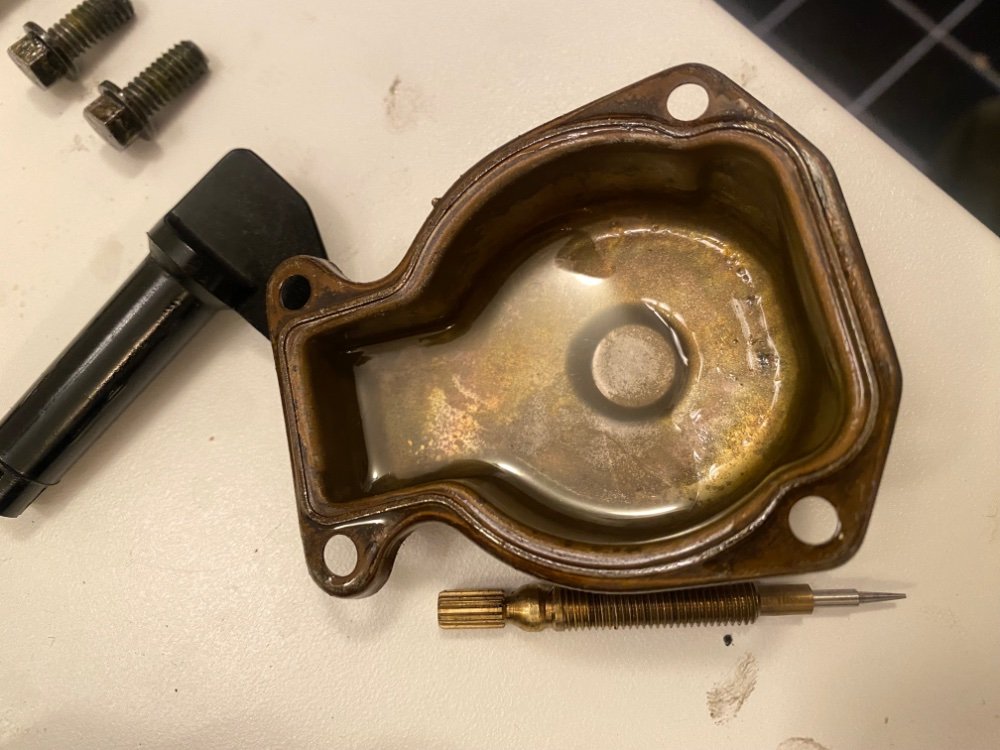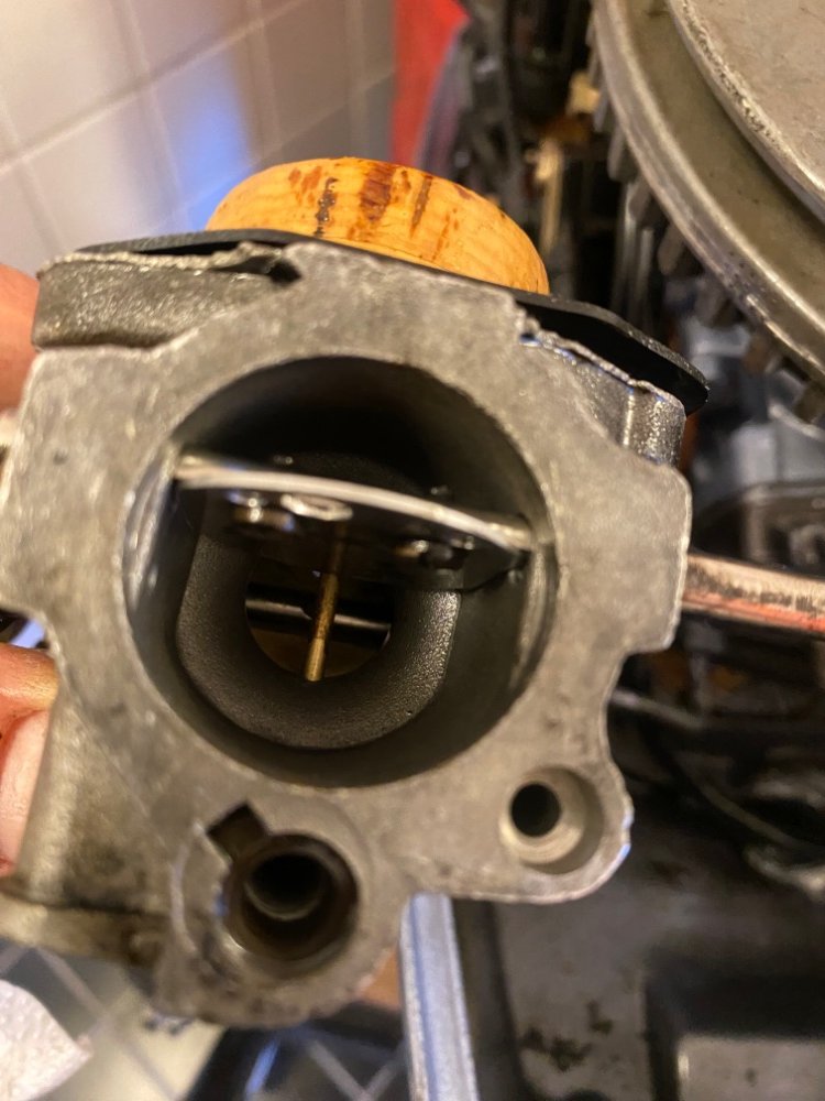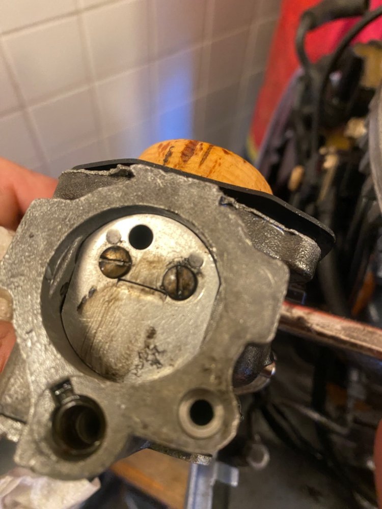 chris_m Svart Mandag 14:59 Link til dette innlegget Svart Mandag 14:59 Då har jag äntligen fått av förgasare och skruvat av skålen. Där ser det relativt rent ut - inga sjöstjärnor eller krabbor i alla fall. Vätskan som ligger där luktar oljeblandad bensin. Men kanske är den blandad med vatten? flottören är av kork! Lite skitig kanske men tror inte jag får den helt ren. Vad skall jag göra nu? Bara tömma/torka och skruva ihop? Eller rensa den med bensin eller något annat? Sitér dette innlegget Link to post