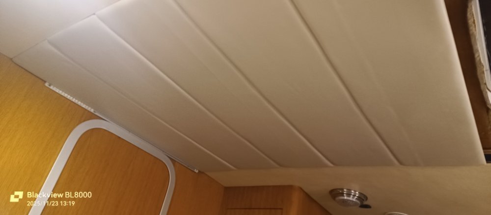 SoBo Svart 24.November Emnestarter Link til dette innlegget Svart 24.November Ble tid til arbeid i dag også. Borrelåsene på midten er festet i takplatene. Samme med festepunkter midt i taket. Også startet med å legge på finer. Den er selvklebende og av tresort amerikansk valnøtt FF. Sitér dette innlegget Stell og oppgradering av en gammel dame (Princess Riviera) Link to post